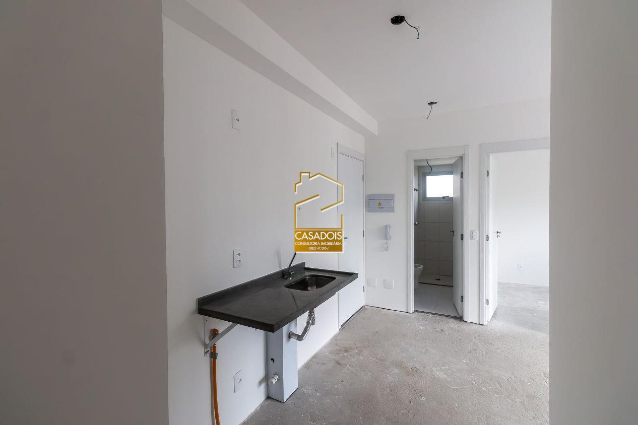 Unidade de 2 quartos, em 39m² de área útil.