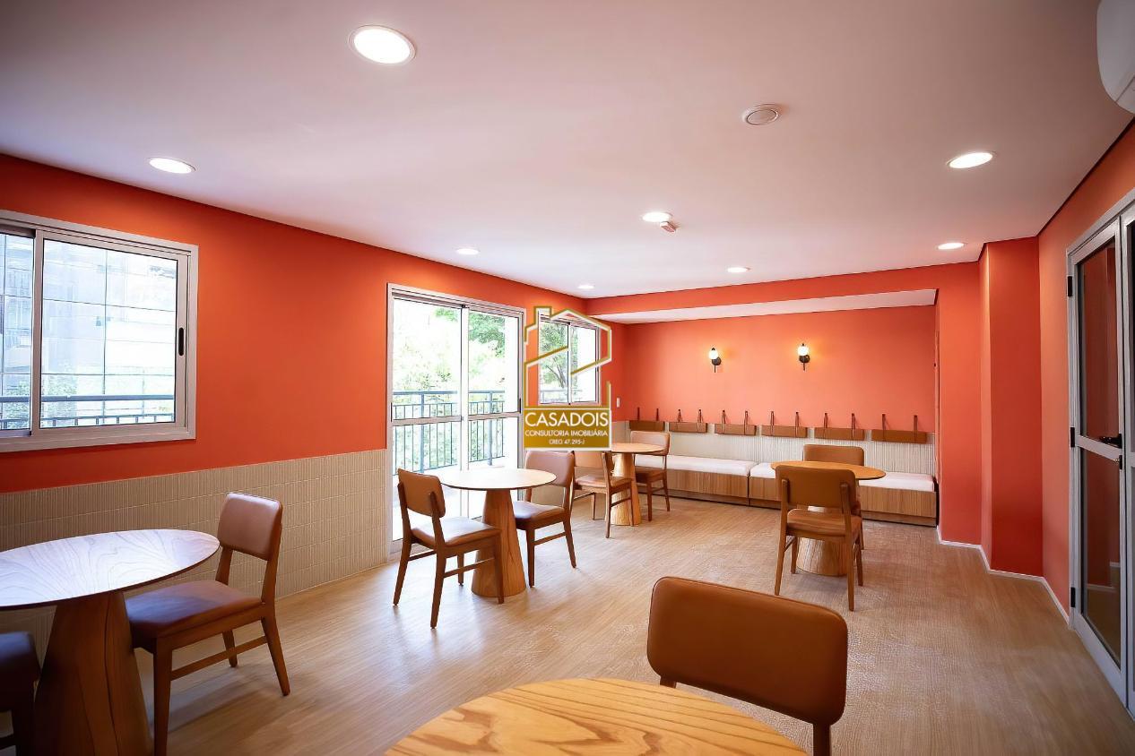 O condomínio possui piscina com solarium, academia completa, salão de festas e espaço gourmet, sala de reunião e espaço coworking, além de bicicletário.