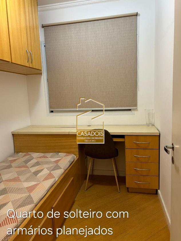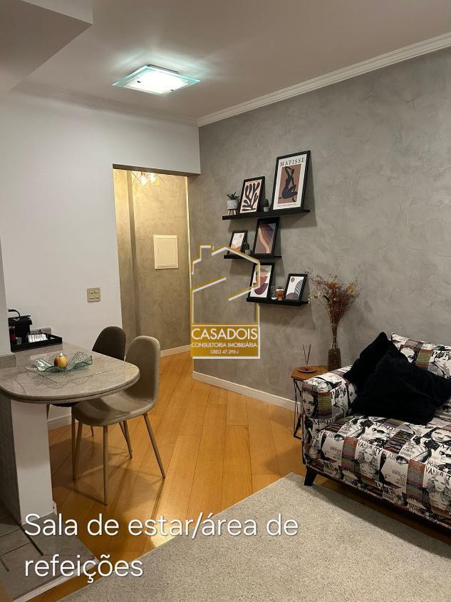 Apartamento com 51m2 sendo com dois dormitórios com armários planejados, sala de estar, cozinha completa também com armários planejados, lavanderia, um banheiro, área de refeições, sacada e uma vaga para autos indeterminada no primeiro subsolo com manobrista. Apartamento totalmente mobiliado equipado com eletro domésticos (TV, sofá, camas, mesa com cadeiras, geladeira, fogão, micro-ondas, etc. (só falta máquina de lavar roupas)) e finamente decorado.