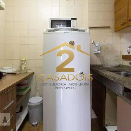 A unidade conta com 2 dormitório, sala com varanda e cozinha completa.