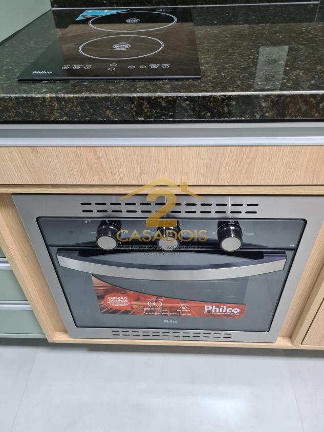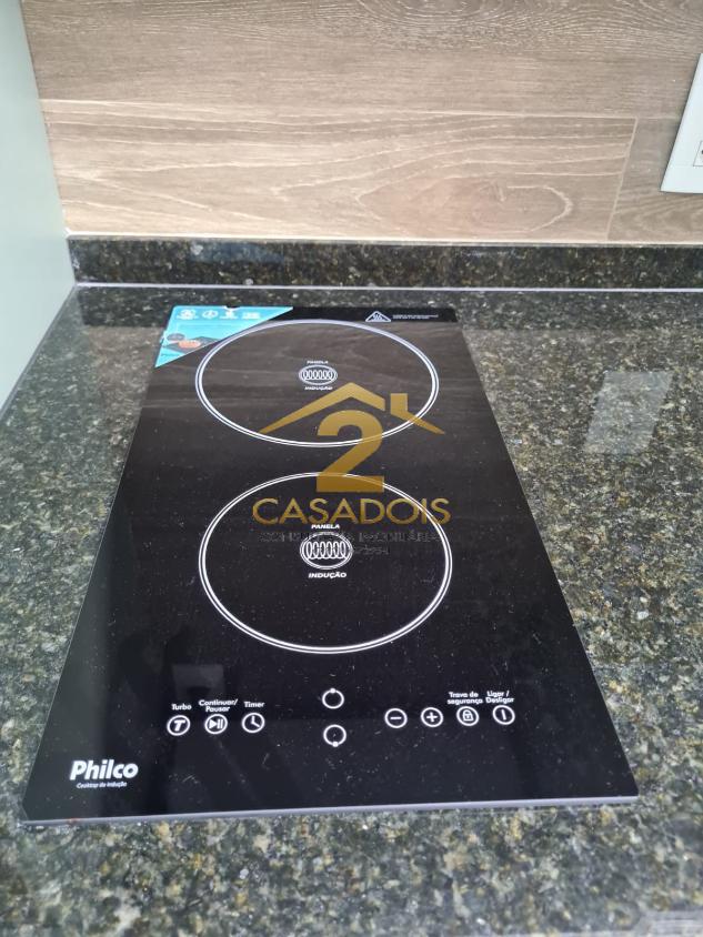 Cozinha equipada com cooktop elétrico, forno elétrico e depurador