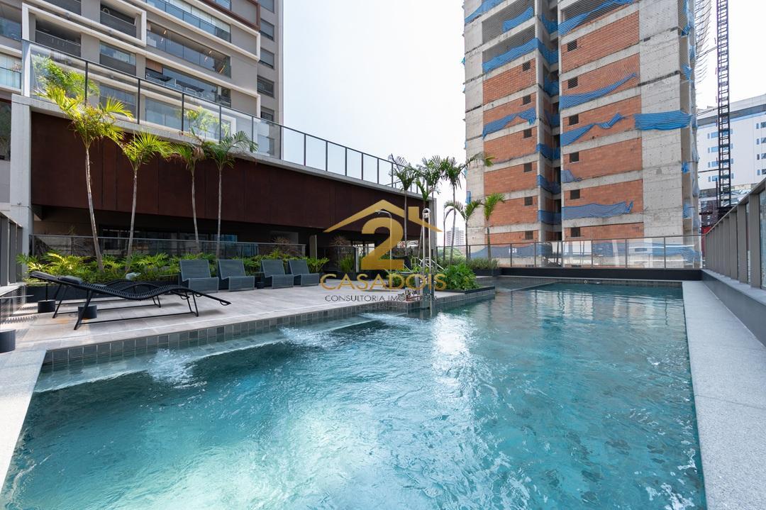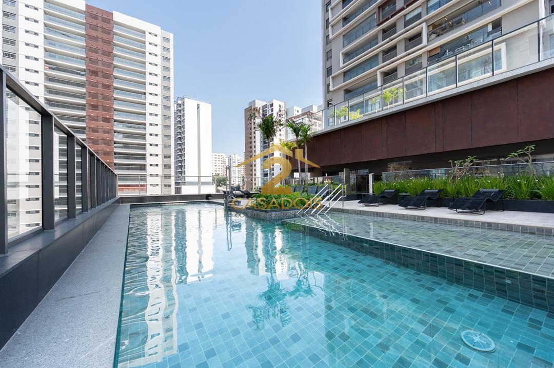 O apartamento possui face norte e vista livre, de frente para os decks das piscinas do empreendimento.