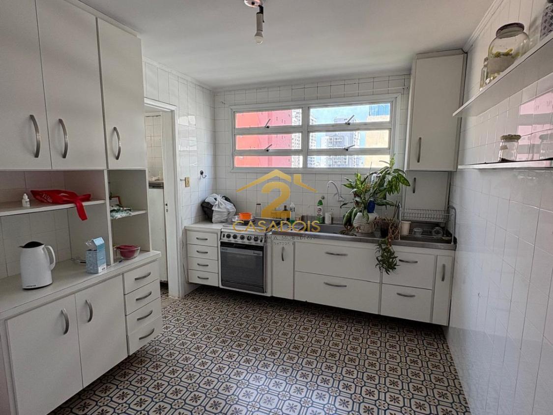 A cozinha, bem posicionada, conecta-se à área de serviço, que conta ainda com dependência completa de empregada, oferecendo versatilidade e conforto adicional. O apartamento é privilegiado pela incidência de luz natural ao longo de todo o dia, um diferencial que valoriza cada ambiente e proporciona bem-estar constante.