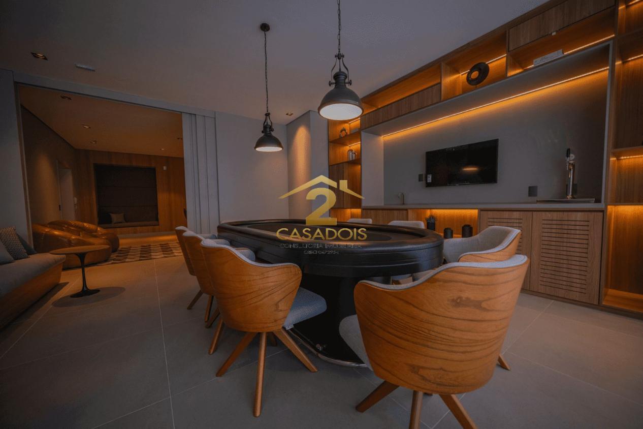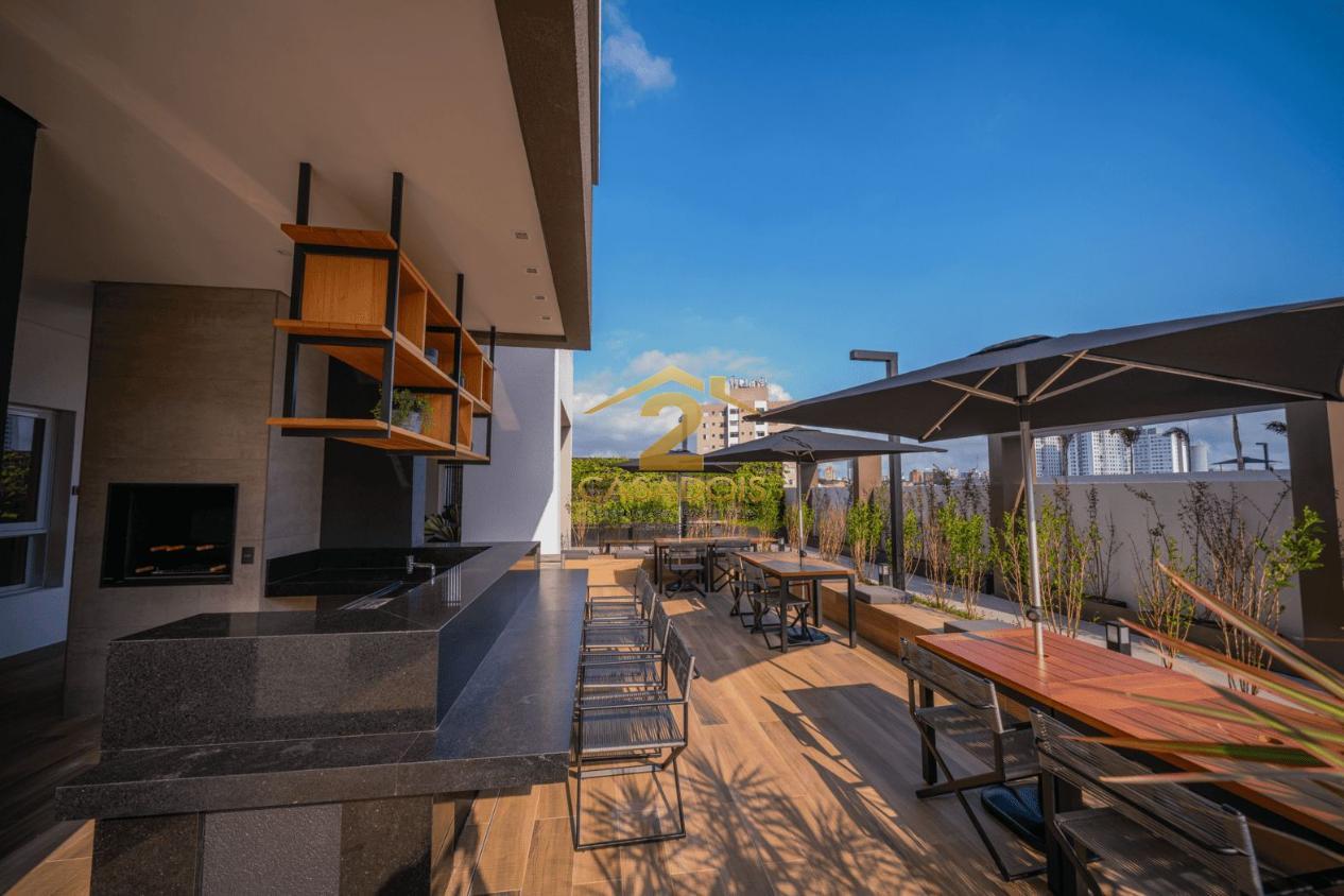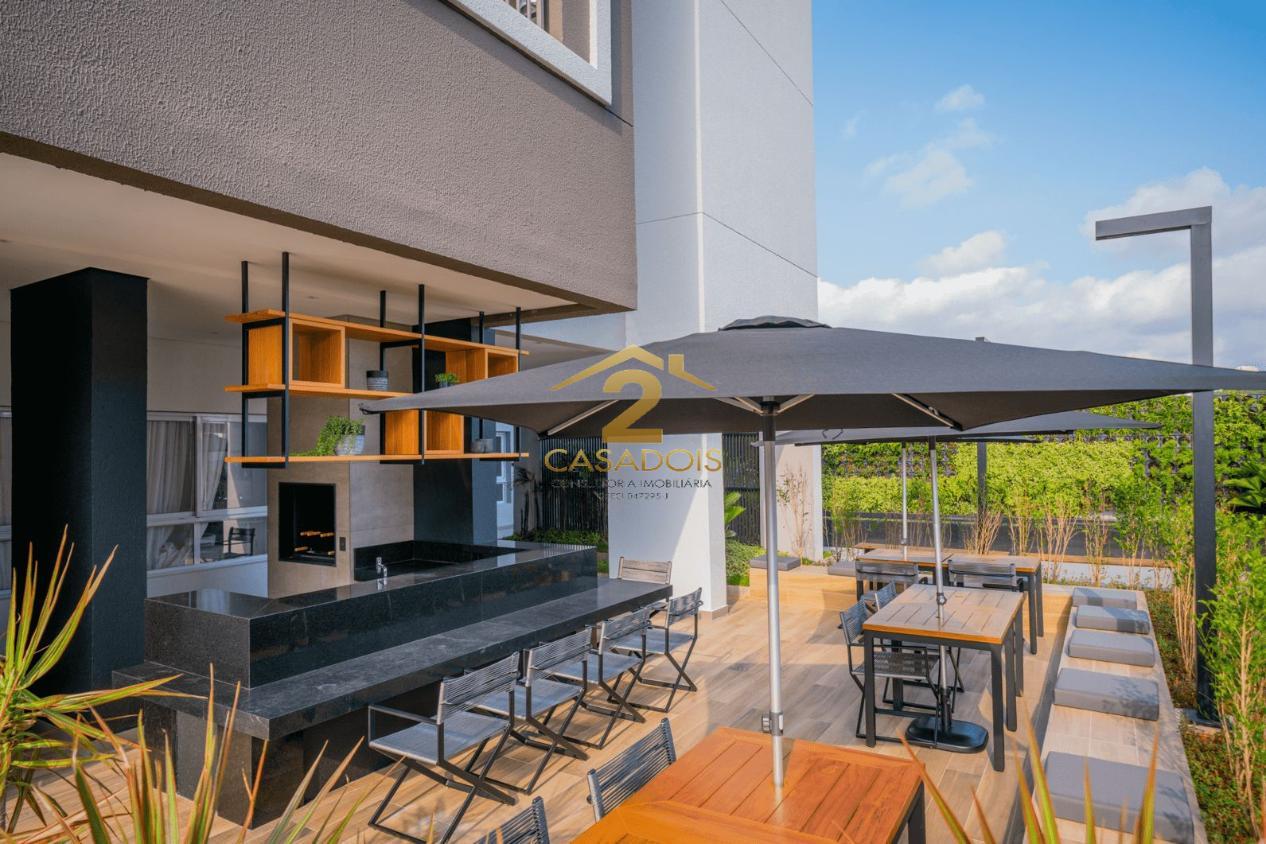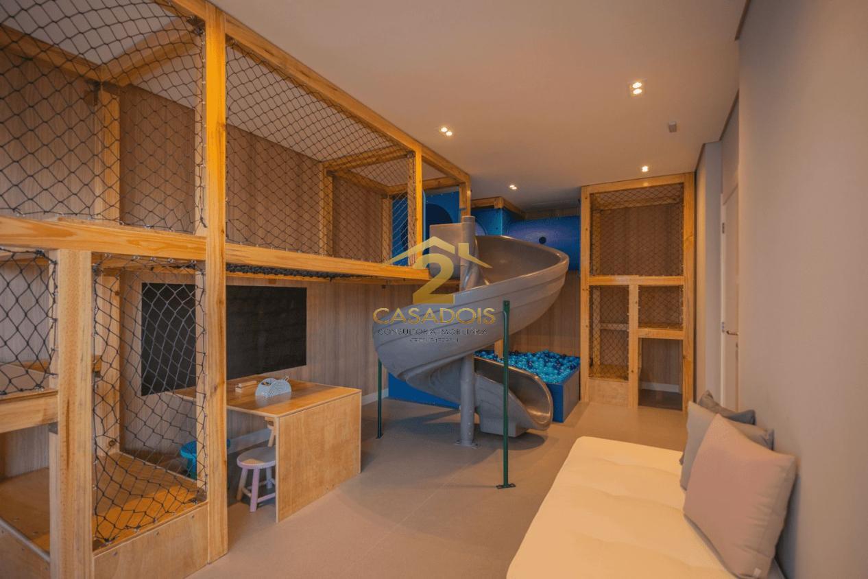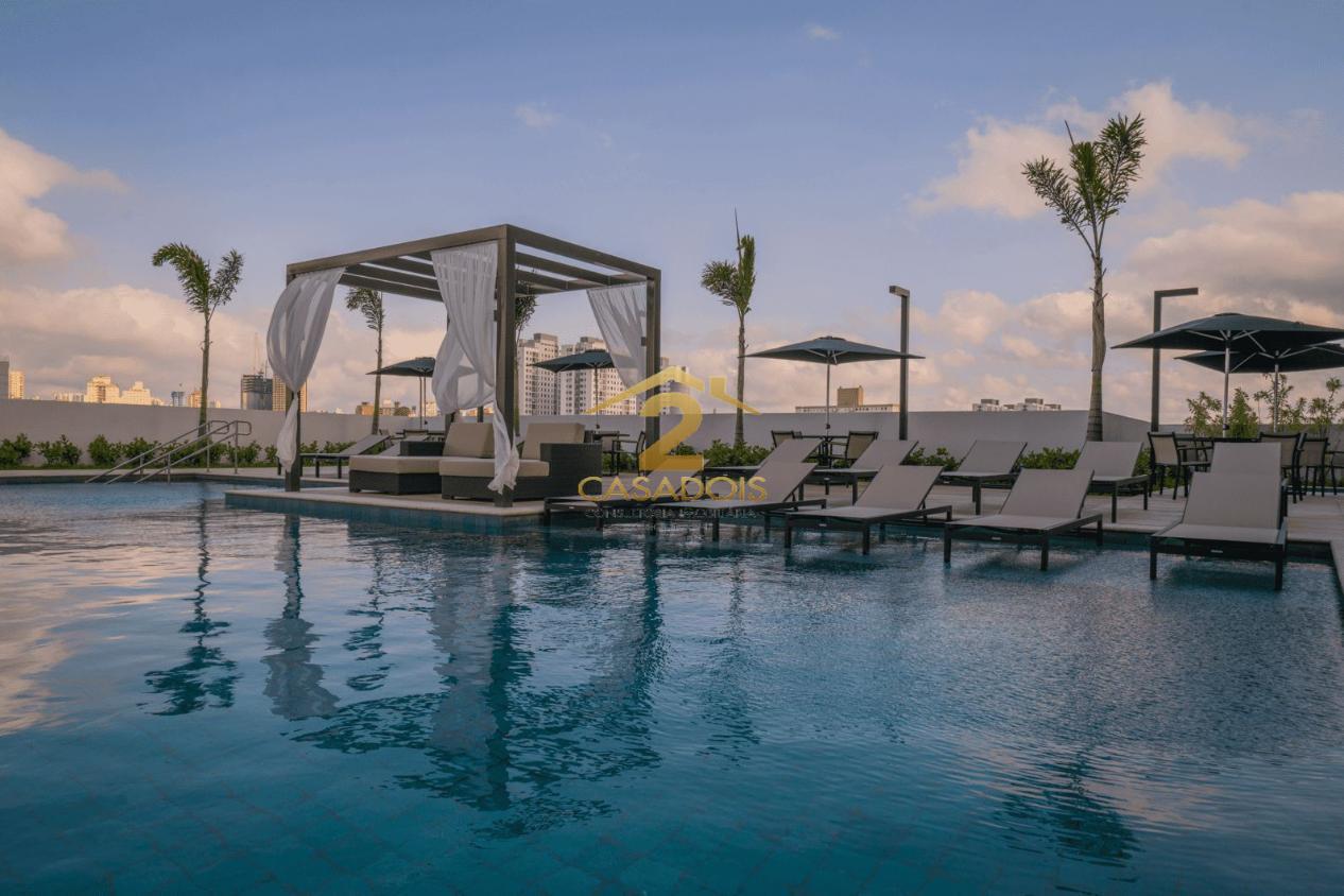 Condomínio moderno com piscina, academia, brinquedoteca, salão de jogos, salão de festas e churrasqueira.