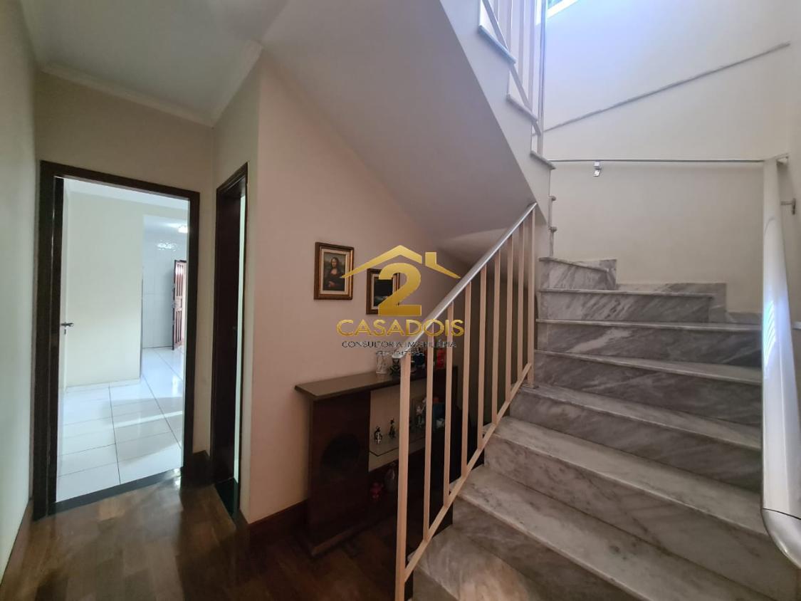 O imóvel conta com 4 dormitórios, sendo 1 suíte, além de um banheiro que atende aos demais quartos no piso superior. A área íntima é acessada por uma elegante escada em mármore, que agrega charme ao ambiente.