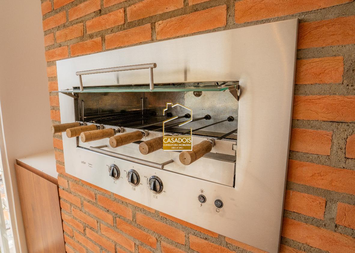 A sala de estar e jantar é ampla e iluminada naturalmente. Para quem ama receber, a churrasqueira a gás torna tudo ainda mais especial. A cozinha já está equipada com máquina de lavar louça, fogão e depurador. Despensa e armários generosos para organização impecável.